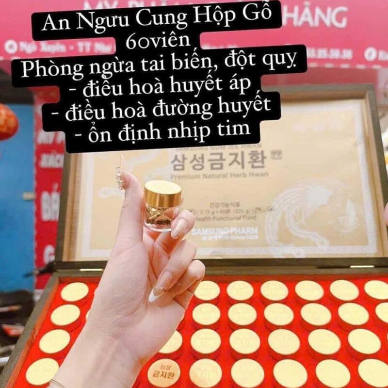 An Cung Ngưu Hoàng Hoàn Hàn Quốc hộp gỗ 60 viên là sản phẩm cao cấp đến từ thương hiệu Samsung Pharm – Hàn Quốc, được biết đến với công dụng hỗ trợ phòng ngừa tai biến, đột quỵ, cải thiện tuần hoàn máu não và bảo vệ sức khỏe tim mạch cho người trung niên và cao tuổi.